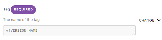 이제 Script 다음의 어느 Step에서든 버전 이름이 필요한곳에 $VERSION_NAME으로 변수를 사용해주면된다. 나는 Github Release를 추가해서 Tag명을 "v0.0.0" 식으로 자동으로 올라가게 설정해두었는데, 동적으로 정의한 환경변수 예시로 첨부한다.