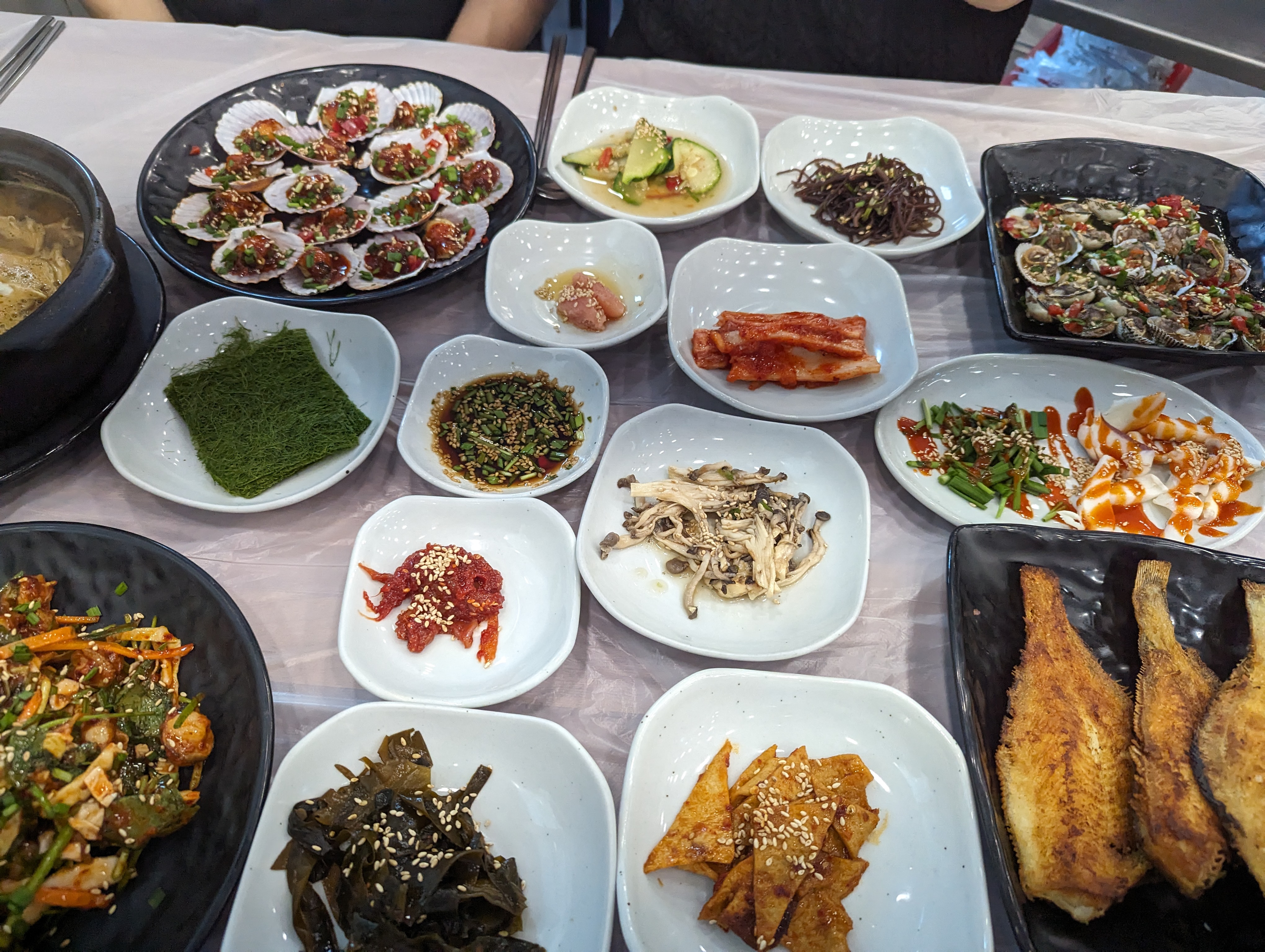 해물외에도 밑반찬인 미역무침이나 콩나물, 감태 등등 모-든것이 서로 다 잘어울린다.