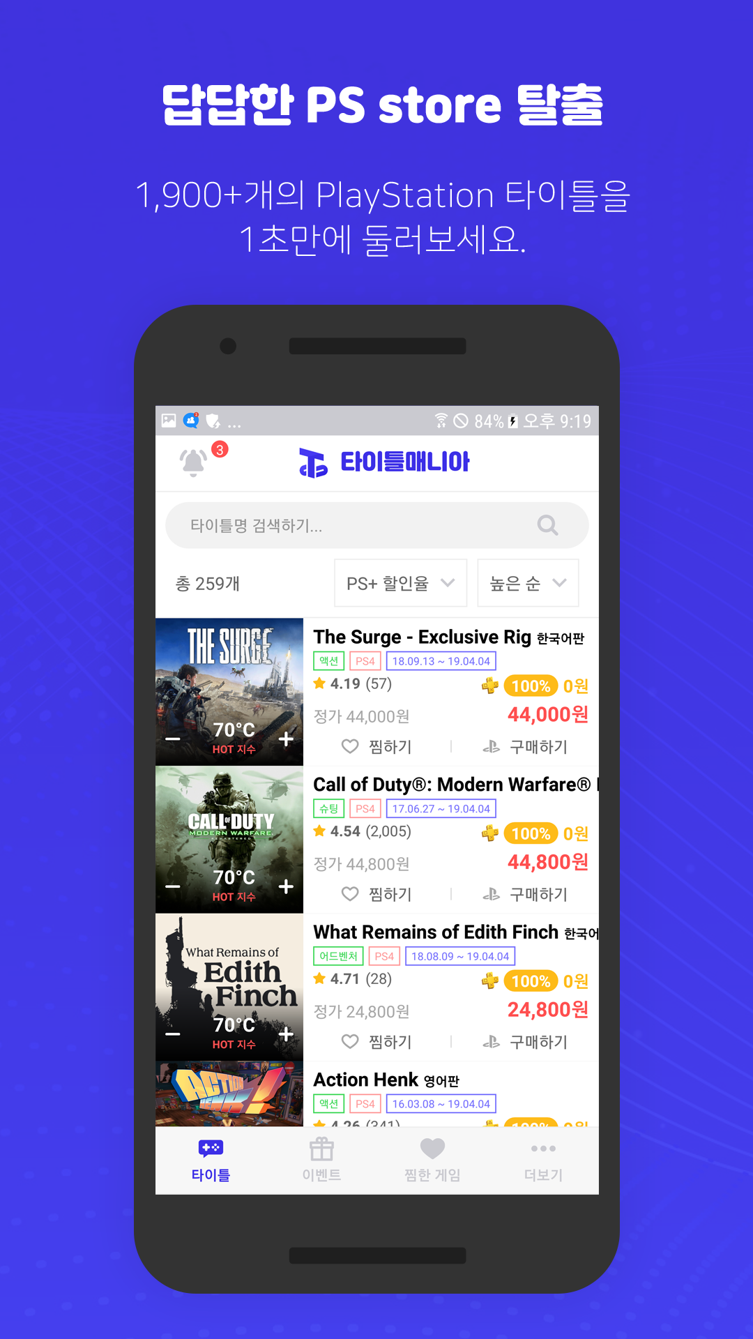 1,900+개의 Playstation 타이틀을 1초만에 둘러보세요.