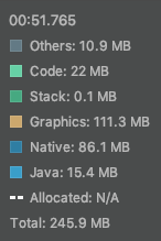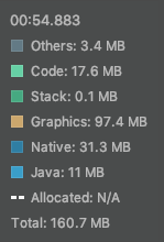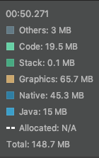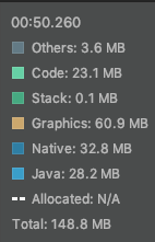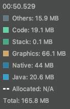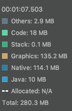 *Native: C 나 C++ 코드에서 할당된 객체에 의한 메모리 사용량. 내가 쓴 코드에서 C/C++을 직접 사용하지 않아도, 안드로이드 프레임워크에서 사용함. 참조 (developer.android.com/studio/profile/memory-profiler.html#how-counted) |