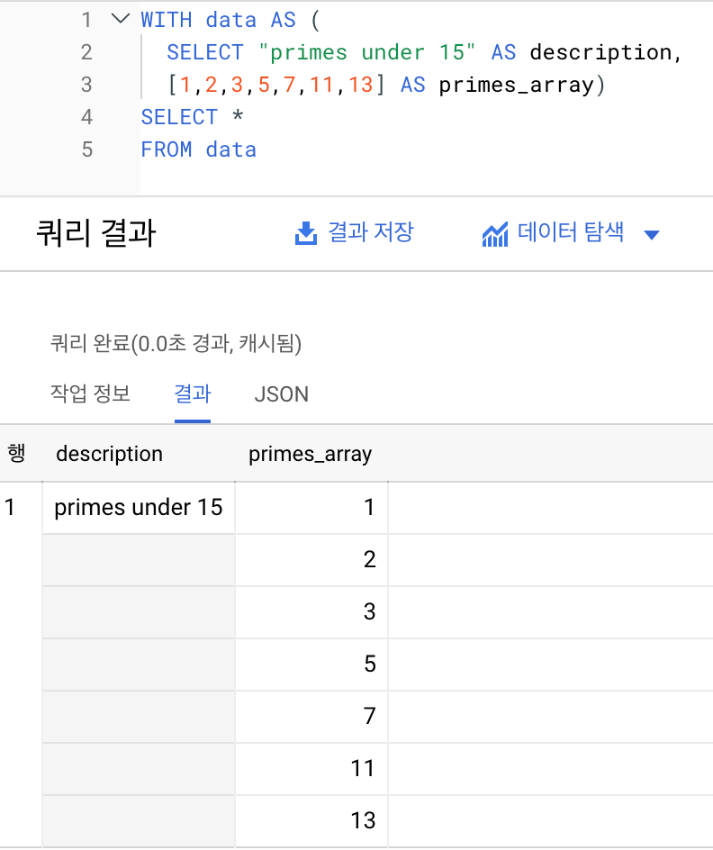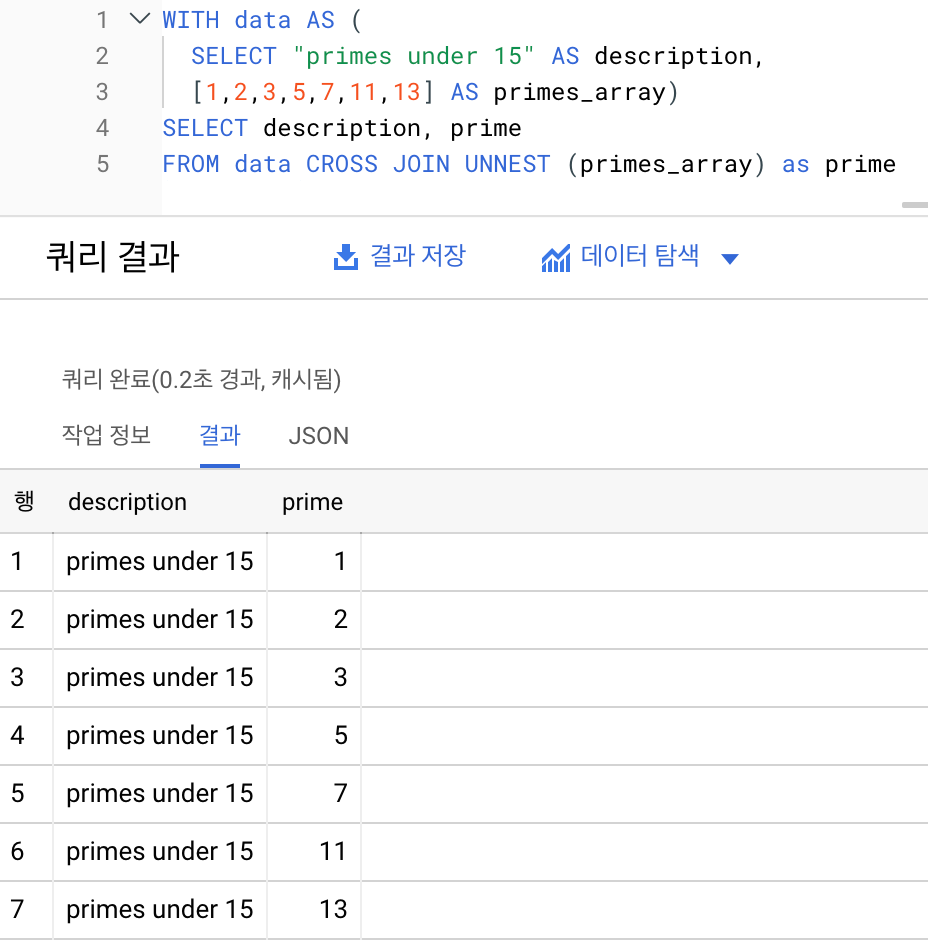 이걸 CROSS JOIN UNNEST 로 쪼개면 다음과 같이 Flat하게 만들 수 있다.