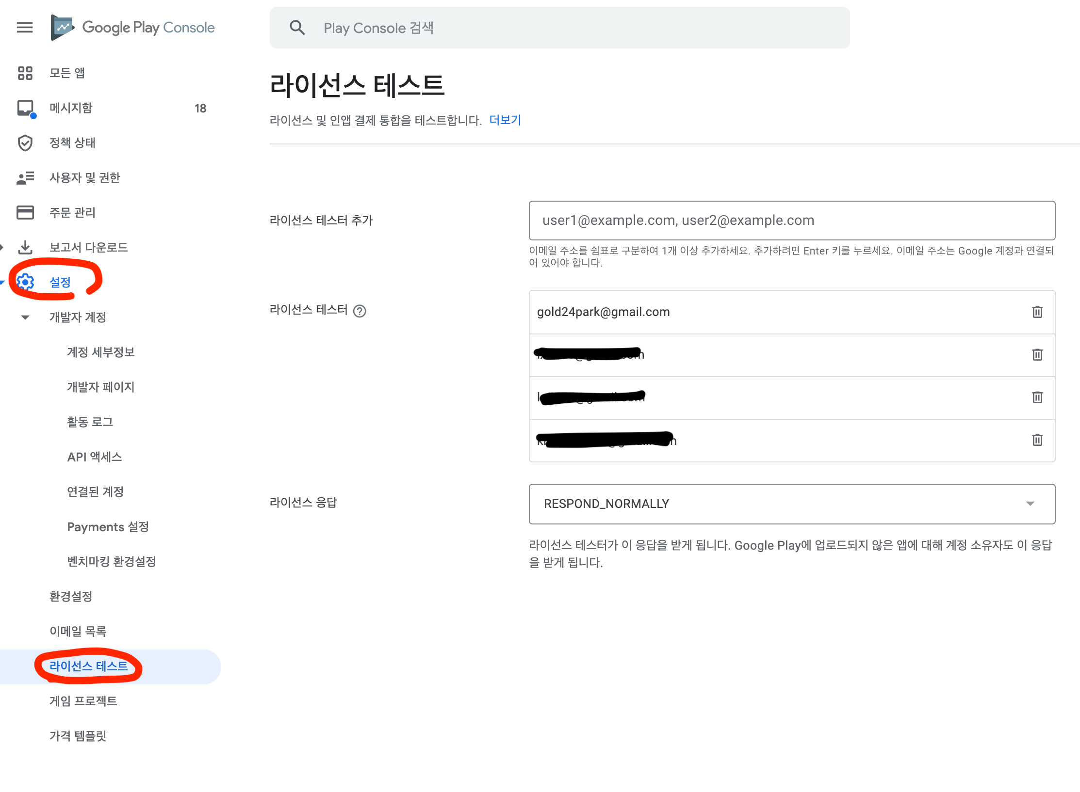구글 플레이 콘솔 > 설정 > 라이선스 테스트에 라이선스 테스터를 등록하면 해당 아이디로 결제하는 건은 테스트 건으로 처리되어 실제 돈이 청구되지 않습니다. 그리고 정기 구독 테스트의 경우 1개월 -> 5분으로 주기를 빠르게 하여 테스트 할 수 있다는 이점이 있습니다.