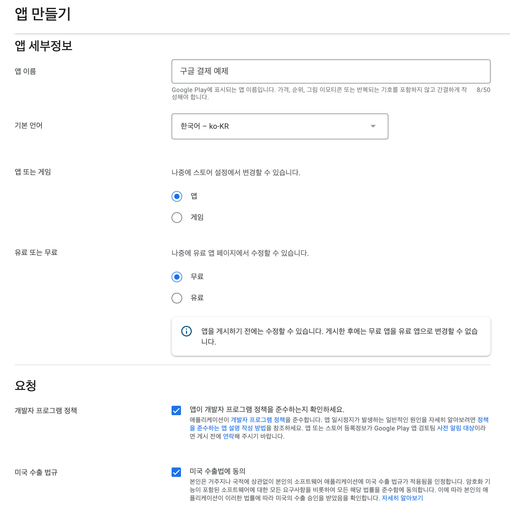 구글 플레이 콘솔에서 앱을 만들어 주세요.