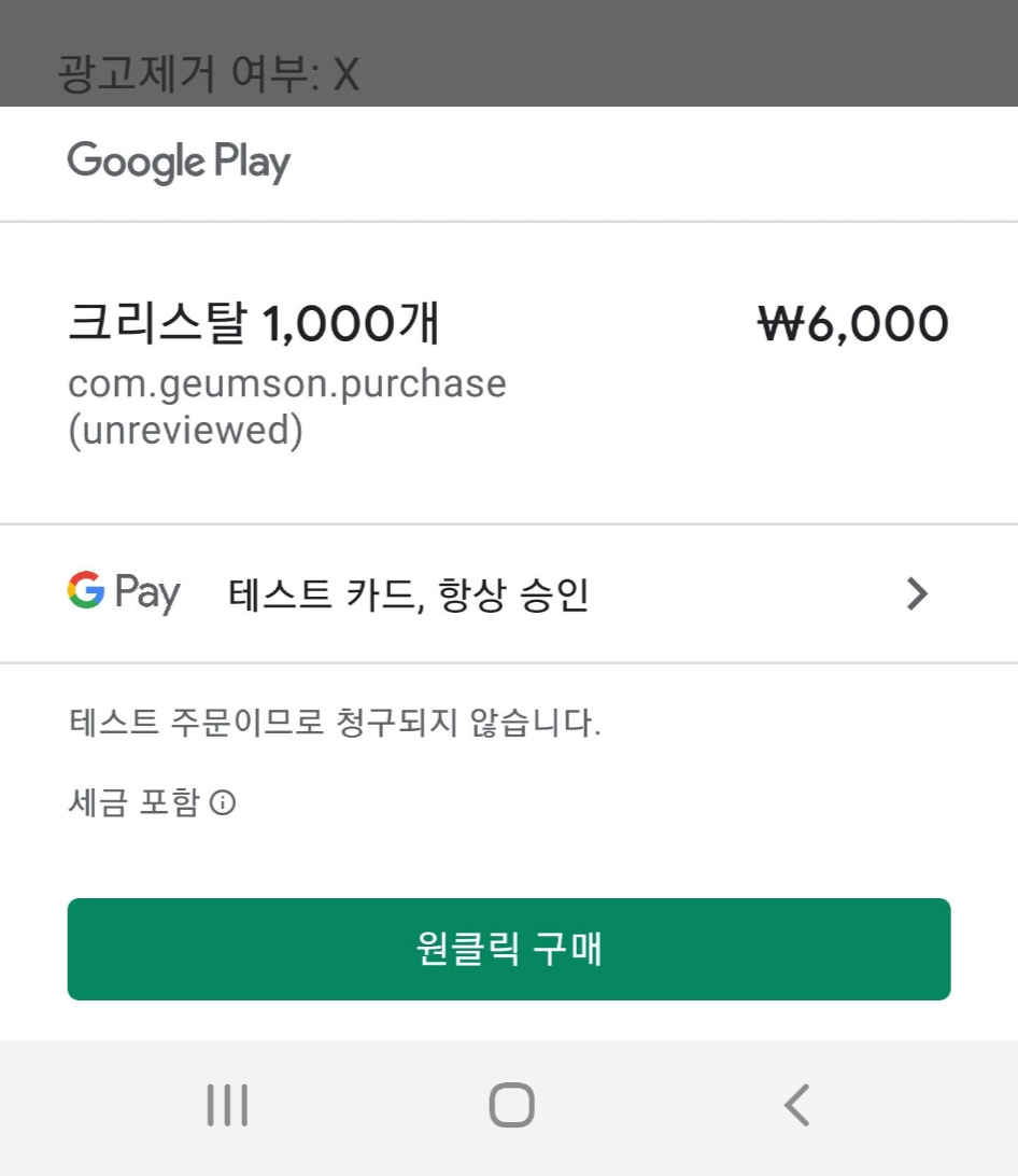 - 광고제거, 크리스탈 충전 상품정보를 받아와서 화면에 표시