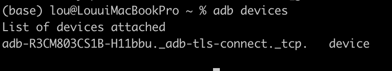 $ export PATH="$PATH:/Users/lou/Library/Android/sdk/platform-tools/:"
