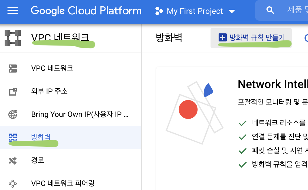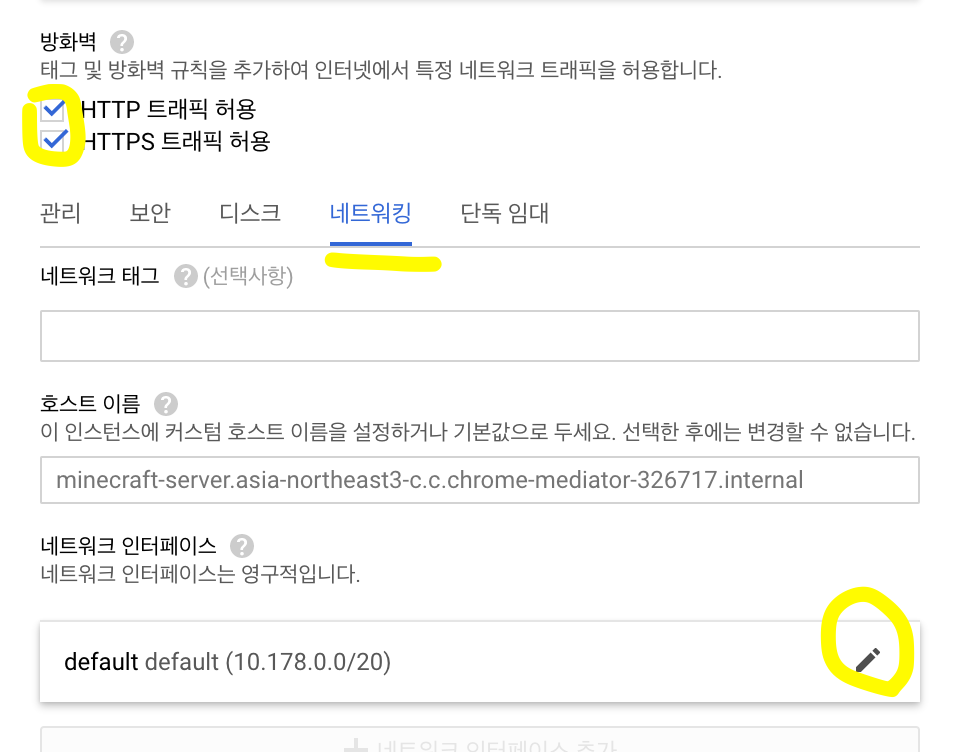 다음은 방화벽 설정이있는데, 아래와 같이 설정하고, 네트 워킹 탭 > 아래의 연필 버튼을 클릭합니다.