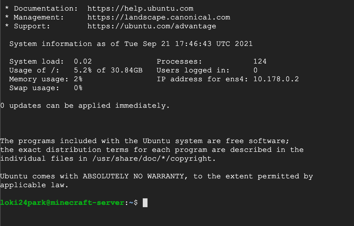 그러면 [detached from 24802.pts-0.minecraft-server]라고 메세지가 뜨며 창을 빠져나올수 있으면서도 서버는 돌아가는 상태에 있게 됩니다.