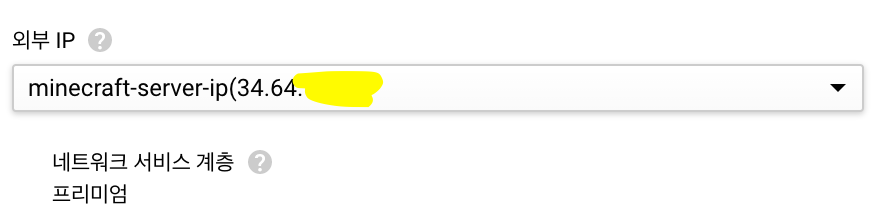 마인크래프트에서 아까만든 VM 인스턴스의 외부 IP와 마인크래프트 프로세스의 포트를 조합해서 서버에 접속합니다.