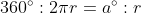 그러면 비례식을 다음과 같이 세울 수 있는데, 정리하면...중심각 크기 a°는 반지름 r의 길이와 관계없이 일정함을 알 수 있다.