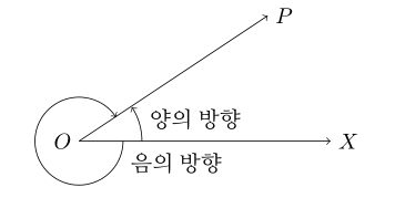 호도법으로는 a° = θRad라고 표기할 수 있으므로 0 <= θ <= 2π이다.