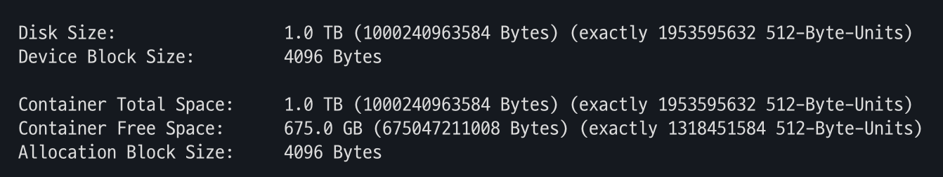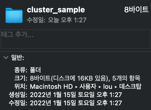 클러스터는 파일 시스템에서 파일에 대한 디스크 공간을 할당하는 단위이다. 아래 사진은 내 맥의 파일 시스템 정보인데, 보면 Allocation Block Size: 4096 Bytes라고 된 부분이 있을 것이다. 이것이 바로 클러스터의 크기다.