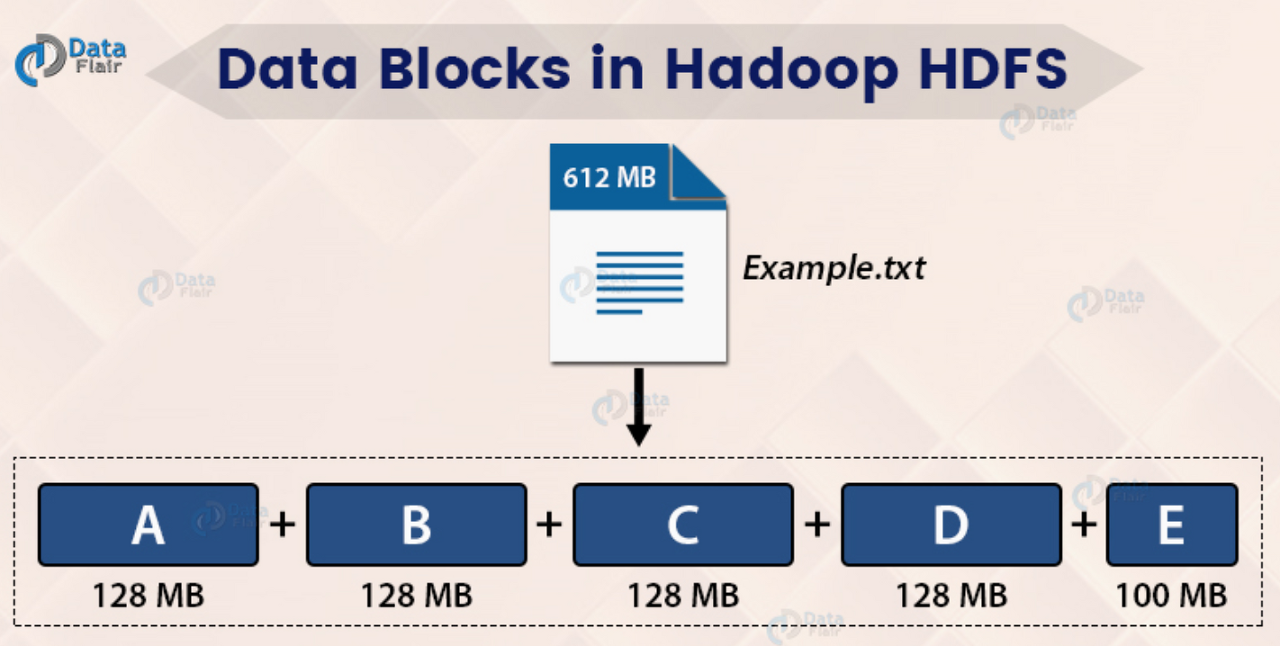 HDFS에서 대용량 파일을 분산하여 저장하기 위해 메타 데이터와 데이터를 분리하고, 메타 데이터를 Namenode에, 데이터는 블록의 기본 크기인 128MB 단위로 잘라서 최소 3개의 복사본을 생성하여 분산 저장한다. 클라이언트는 Namenode에 접근하여 관련한 블록들의 목록과 주소를 가져와서 가장 가까운 위치에 있는 Datanode에서 블록들을 읽어온다.