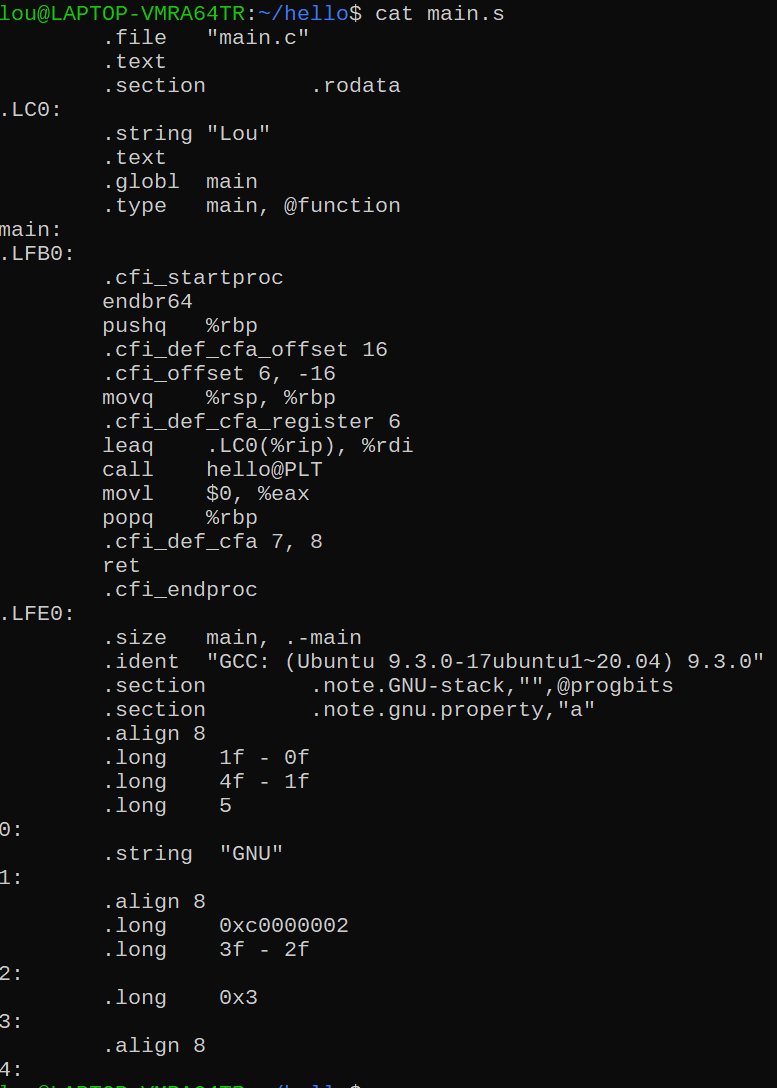 하지만 어셈블리 코드를 다시 기계어로 번역하는 과정이 또 필요하다. gcc에 -c 옵션을 주게되면 *.o 확장자의 object 파일이 만들어진다.