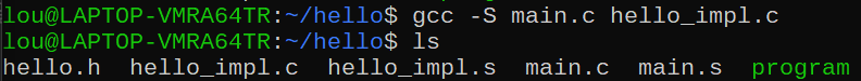 gcc -c main.c hello_impl.c