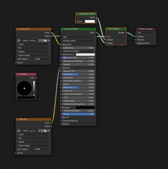 대부분 처음에 "rig"이라는 이름으로 import되는 Armature라고하는 녀석의 이름을 스크립트상에서 맞춰주기만 하면 해당 Armature의 쉐이더 설정을 바꾸어준다.
