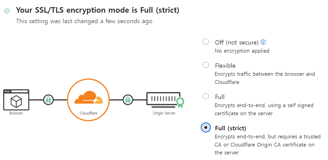 2. SSL/TLS > Full(Strict)로 설정