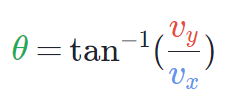 우리는 V에대해 모르기때문에, 탄젠트 식으로 θ값을 구할 것이다. 양변에 역탄젠트(Arctangent)를 취해주면 식은 θ에 대하여 정리된다.