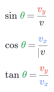 위에서 본 그림을 우리에게 익숙한 직각 삼각형으로 나타내면 사이각 θ에대해 이렇게 정리할 수 있다.
