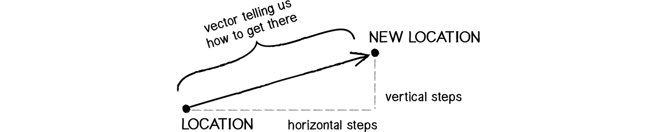 객체의 새로운 위치는 현 위치에 속도를 적용한 값이 된다. 위 그림을 코드로 옮기면 아래와 같다.