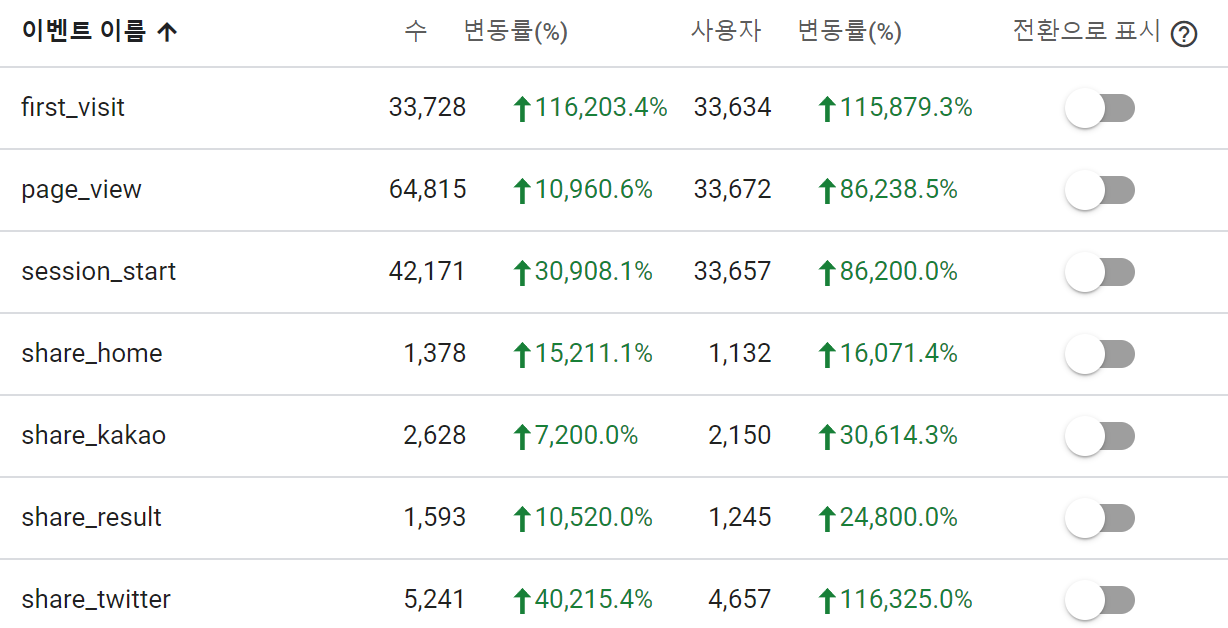 같이 만든 팀원들은 거의다 서비스 출시경험이 없어서 엄청 기대치를 죽여뒀다... 꼭 서비스 출시전에 기대를 죽이면서도 마음한켠에 복권 산거같은 느낌이있는데, 대부분은 기대보단 꽝이긴 했어서 ㅋㅋㅋ