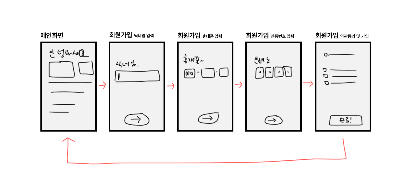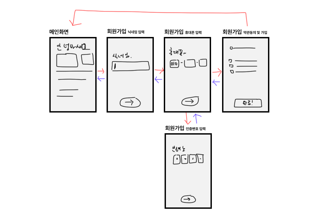 회원가입 가장 마지막단계인 “약관동의 및 가입” 단계에서 뒤로가기를 누르면 인증번호 입력으로 가면 안된다. 인증은 끝났으니 휴대폰 입력으로 가는 것이 맞다.