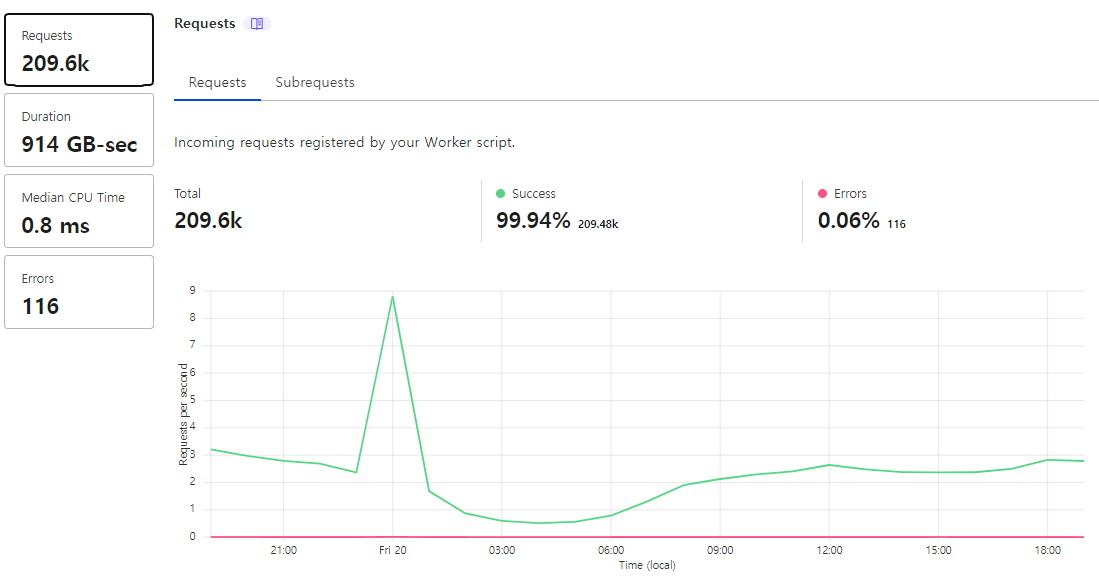 Entrypoint 호출 건 수는 지난 24시간동안 20만건, 1달 예상 약 6백만건이라 여유있긴하지만 어쨌든 돈을 아끼고 싶은 마음이 들었다.