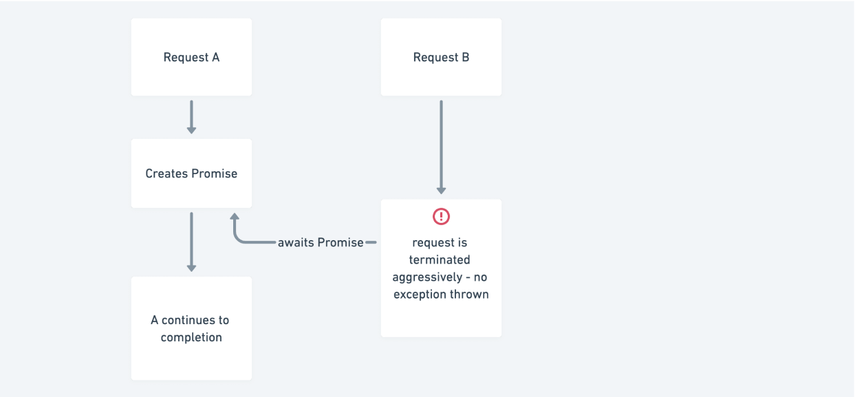동일한 Worker 인스턴스에서 A, B 2개의 요청이 왔을때 A에서 Promise를 생성하고 B에서 해당 Promise가 끝나기를 기다릴때 B에서 Event loop가 끊기면서 요청이 중단된다고 한다.