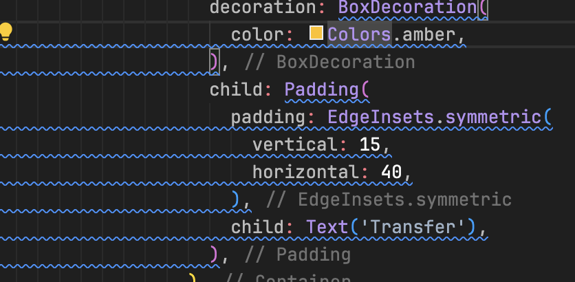 Flutter 개발할때 const 키워드를 붙이지 않으면 아주 짜증나는 물결표시가 시선을 강탈한다.
