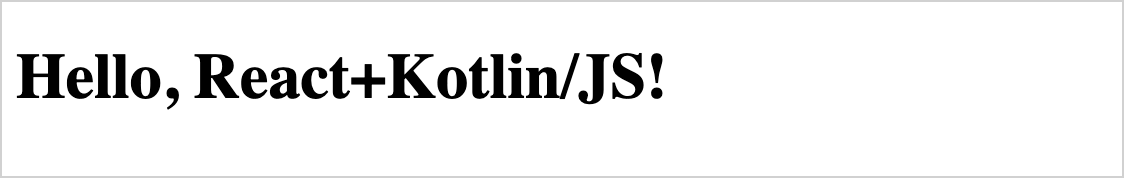 fun main() { val container = document.getElementById("root") ?: error("Couldn't find root container!") createRoot(container).render(Fragment.create { h1 { +"Hello, React+Kotlin/JS!" } }) }