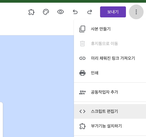 먼저 더보기 메뉴에서 [스크립트 편집기]로 진입한다.