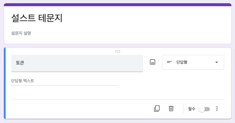 여기에 값을 넣은채로 설문지에 들어오게되면 이렇게 미리 값이 들어가게된다.