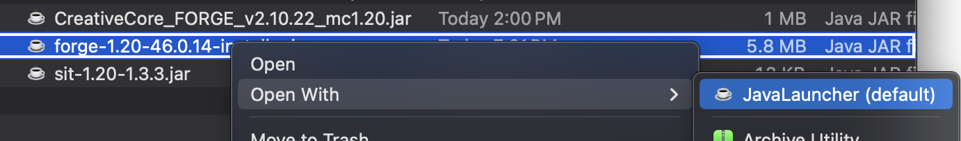 그러기 위해서 forge.jar 파일을 우클릭 > JavaLauncher로 열자.