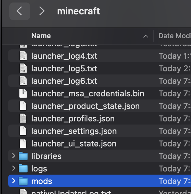 ApplicationSupport/minecraft 폴더로 들어가서 mods 폴더를 찾는다.
