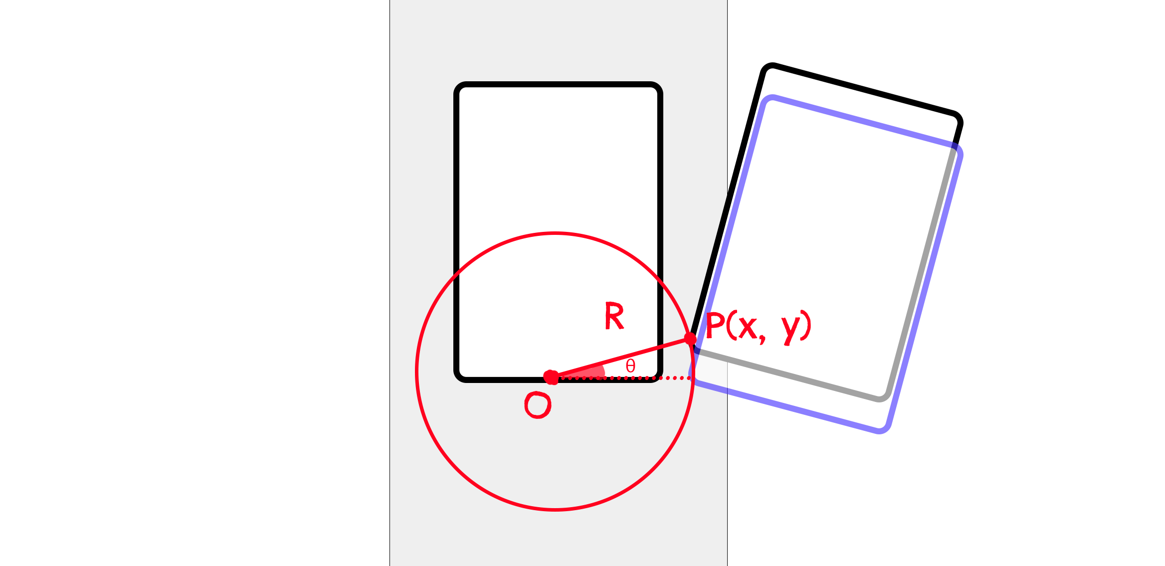 - θ = 회전각도(rotateDegree)의 라디안 값