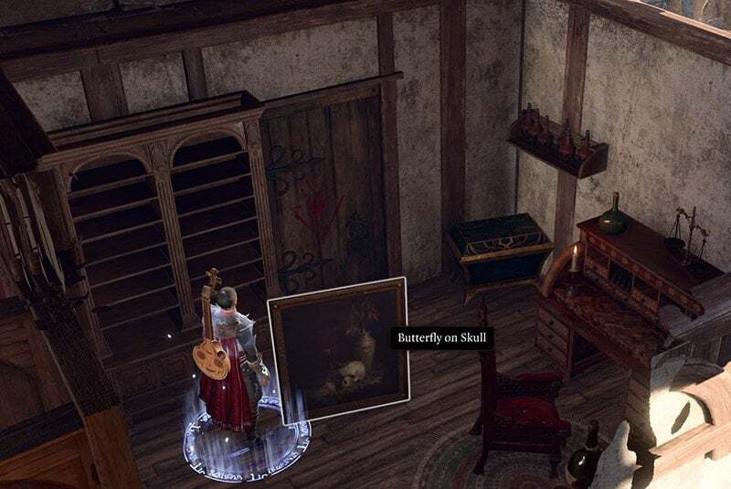상점에 들어오면 별 거없으니 파밍하지마시고 가장 안쪽의 방으로 들어가 우측에 걸린 "해골 위의 나비" 그림을 떼어내면 버튼이 보일겁니다. 버튼을 클릭하면 좌측의 숨겨진 문이 드러나게 됩니다.