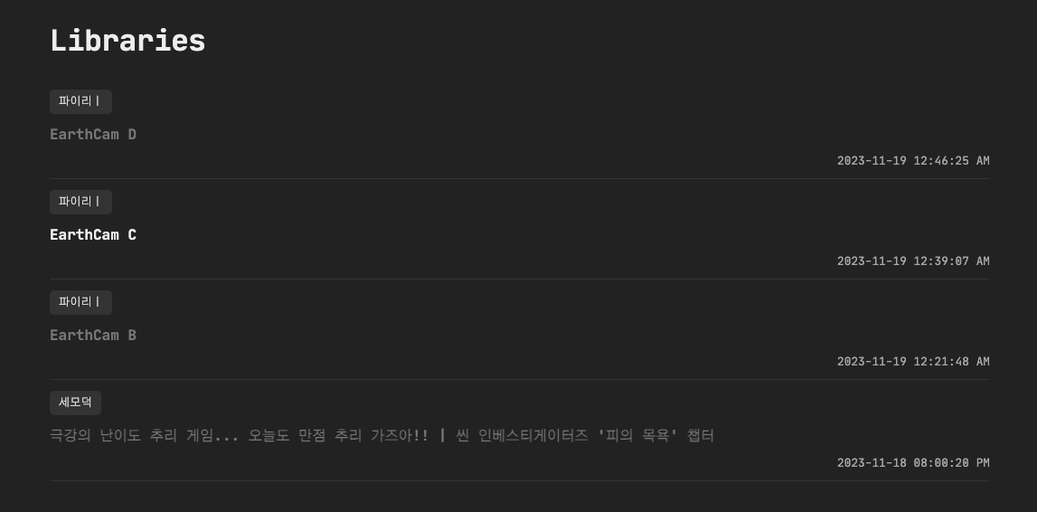 - 지난 방송 리스트: 최대 3일까지의 방송목록을 가지고 있는다.