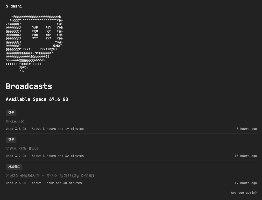 오늘은 (나만쓰는) 트위치 다시보기 서비스 DASHI에 추가 업데이트를 진행했다.