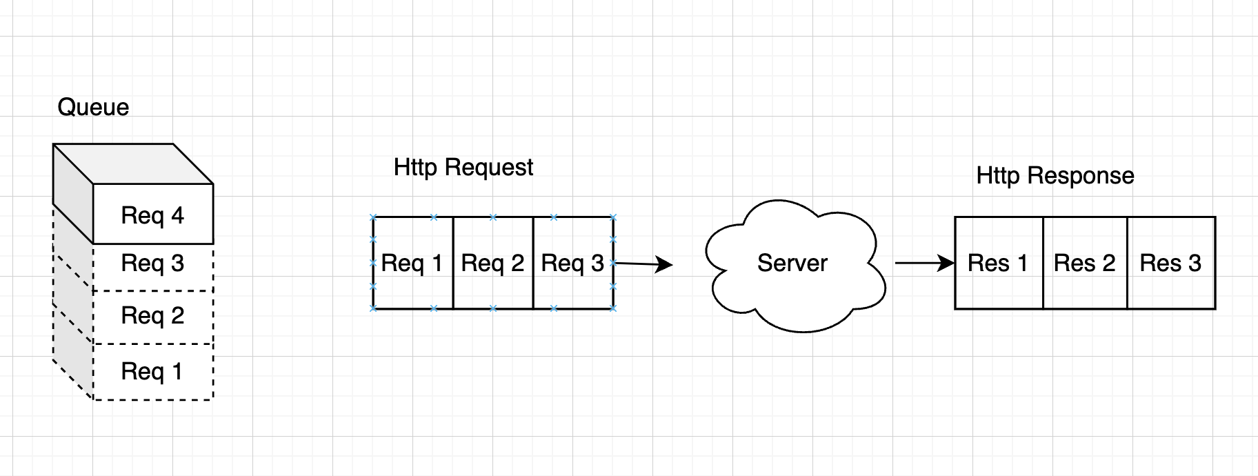 주기가 지나면 Queue는 비워지고, 그동안 쌓였던 모든 요청들을 한꺼번에 처리한다. 예시는 서버에 HTTP Request를 보낸다. 그동안 새로운 요청 Req4는 Queue에 계속 쌓이며, Req4는 이번 요청 주기를 놓쳤으므로 다음 주기에 처리된다.