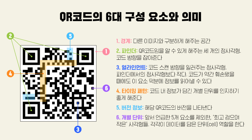 이 이미지가 QR코드의 구성요소를 가장 잘 설명해주고 있어서 들고왔다.