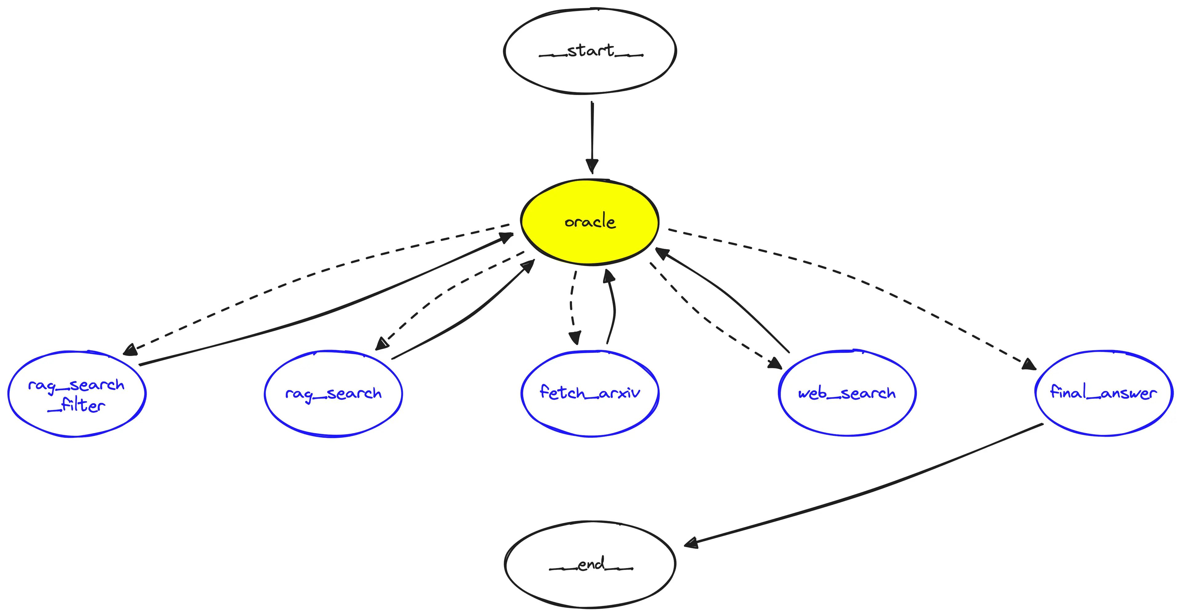 Agent는 상태머신 내에서 주어진 도구(Tool)들을 필요에따라 사용하는 것을 반복하면서 최종 답변을 만들어낸다. 이 과정은 사람이 과제를 해결하는 과정과 비슷해보인다.