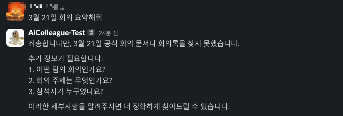 Context Embedding 이후 회의록을 (운이 좋다면…ㅋㅋㅋ) 검색할 수 있게 되었다. “운이 좋다면”이라는 조건이 들어간 이유는 지금 단순히 Similarity Search로만 문서를 가져오기 때문이다. “3월 25일 회의”로 검색해도 3월 14일이 걸린다던가, 3월 얘기가 많이 나오는 2월 회의록이 나온다던가 하는 이슈가 있다.