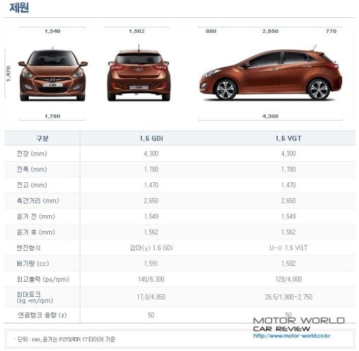 실제 전폭을 보면 i30가 더 좁은데 뭐 사정은 디자이너들만 알겠지.
