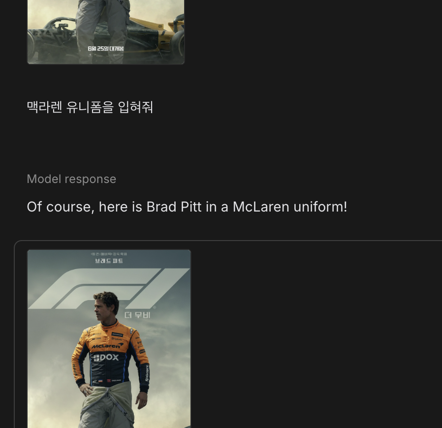 Safety Setting의 경우 Block none으로 설정하면 해로운 컨텐츠도 막지않는데, 아주 잔인한 묘사의 이미지를 요청했는데 막힌걸보니...이미지 모델 보다는 텍스트 모델에 적용되는 듯하다.